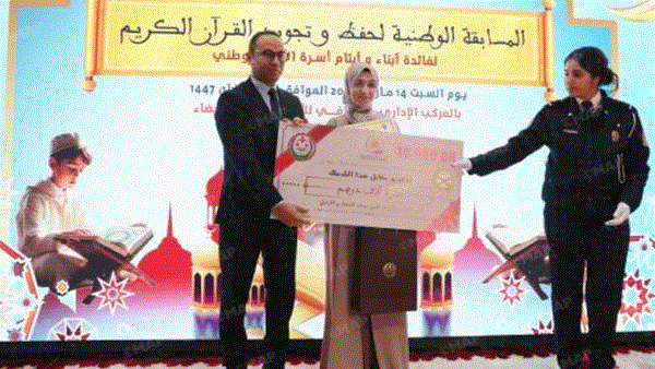• فاطمة الزهراء اليومي تفوز بالجائزة الأولى للمسابقة الوطنية لحفظ القرآن الكريم لفائدة أبناء وأيتام أسرة الأمن الوطني