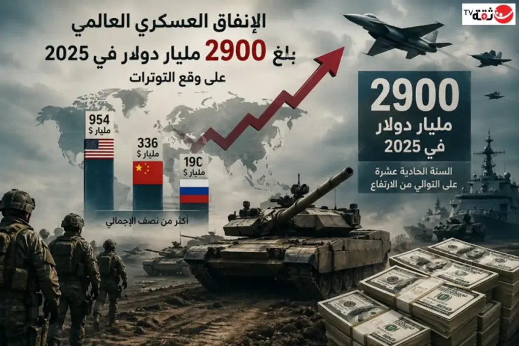 • تقرير: الإنفاق العسكري العالمي بلغ 2900 مليار دولار في 2025 على وقع التوترات