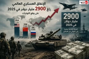 وفي الشرق الأوسط، بلغ الإنفاق العسكري 218 مليار دولار في 2025 مع زيادة طفيفة بنسبة 0.1% .